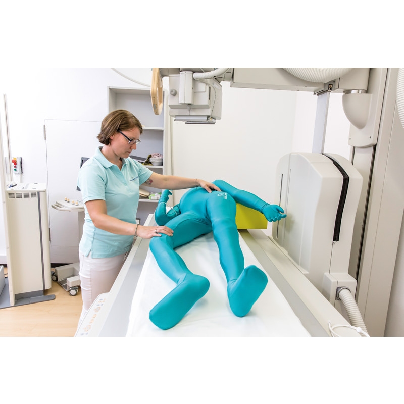 Ta model je edinstven na svetu in zagotavlja odlične možnosti za usposabljanje za tehnike pozicioniranja in poravnave pri projekcijski radiografiji. Moral bi biti del osnovne opreme vsake radiografske šole. Fantom vsebuje pravo človeško okostje ter obrise grla, pljuč, srca in ledvic (organi bodo na sliki ustvarili senco), kar omogoča snemanje pravih rentgenskih slik kot pri bolniku. Uporaba pravega skeleta omogoča tudi najmanjše vodilne strukture, kar s plastičnim skeletom ni mogoče. Med sestavljanjem tega fantoma posebno pozornost namenimo pravilni velikosti sklepnih prostorov. Vsi sklepi so premično nameščeni in omogočajo namestitev v vse običajne položaje za rentgensko slikanje (npr. položaj žabe, pro- in supinacija spodnje roke). Roke je mogoče premikati navzgor, zaradi česar je fantom primeren za uporabo pri vseh vrstah kostnih preiskav pod CT. Vsak fantom je ročno izdelan kot unikat, zato se lahko razlikuje po velikosti in videzu. Odvisno od posameznega fantoma ima lahko nekatere patologije, zunanja oblika se lahko razlikuje glede na velikost skeleta. Nova različica je bila preoblikovana v sodelovanju z znano nemško šolo za radiografe in ustreza vsem potrebam izobraževanja na področju radiografije. Ta fantom se prodaja samo na podlagi dokazila o medicinski uporabi. V naravni velikosti.