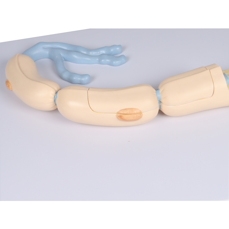 Na 2.500-krat povečanem prikazu je prikazana struktura tipičnega nevrona. Na prerezu soma so vidni vsi notranji celični organi, vključno z jedrom, Golgijevim kompleksom ter gladkim in grobim endoplazemskim retikulumom. Dendrit je mogoče odpreti na dva dela in tako razkriti notranje strukture, kot sta Schwannova celica in mielinska ovojnica.