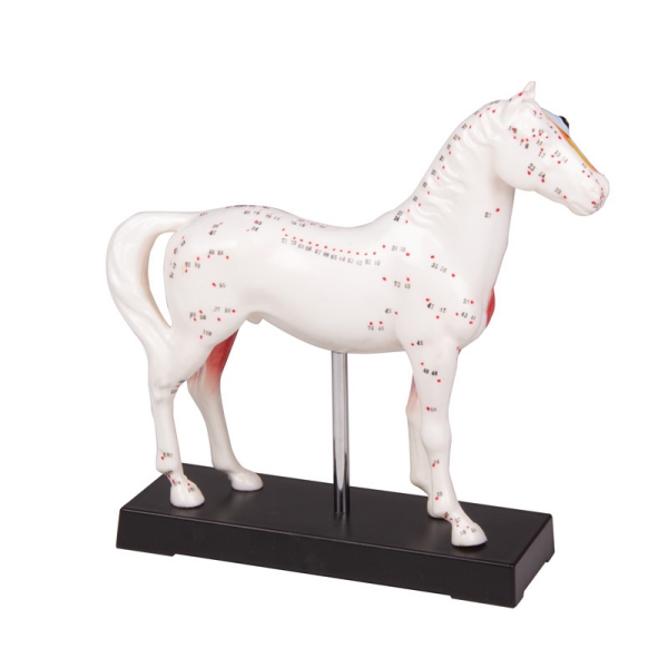 Akupunkturni lik konja s prikazom akupunkturnih točk, mišičevja in notranjih organov.