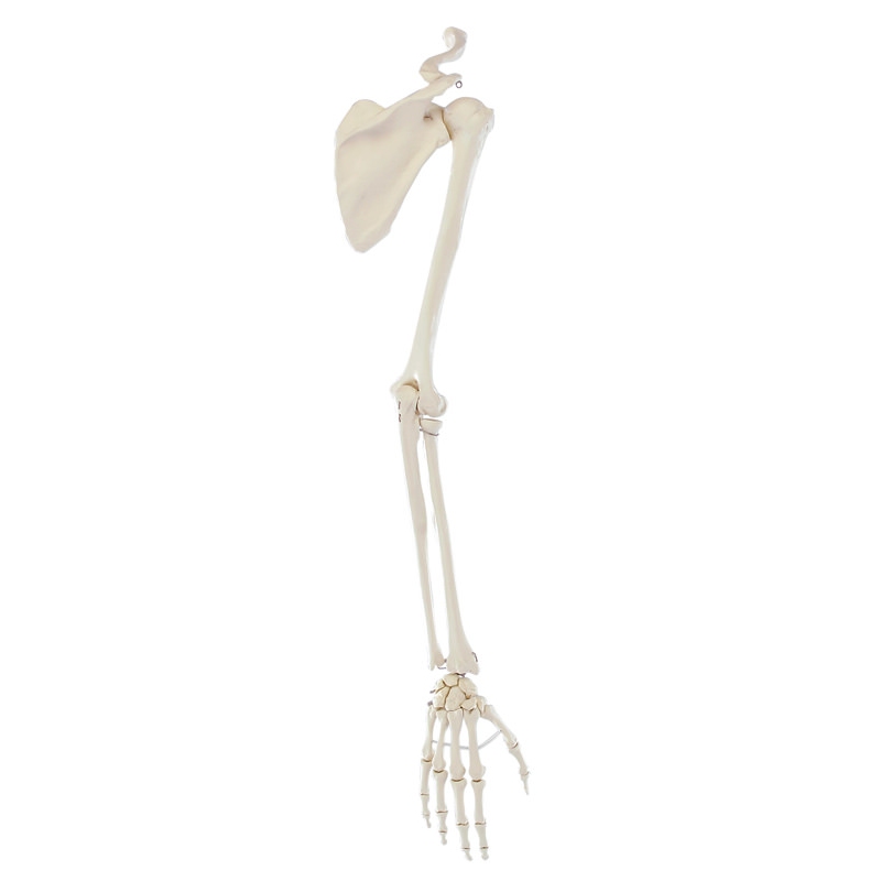 Odlitek okostja človeške roke, ki ustreza resničnemu življenju. Prikazani so gibi kosti spodnje roke (pronacija in supinacija) in gibi ročnega sklepa. Roka je premično nameščena na žici.