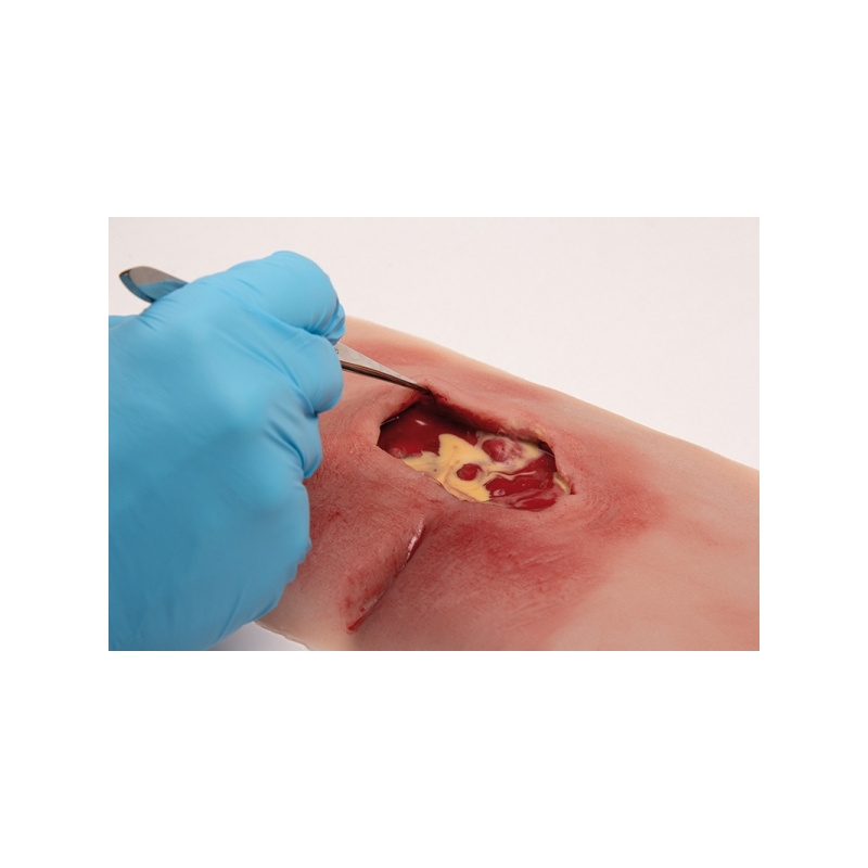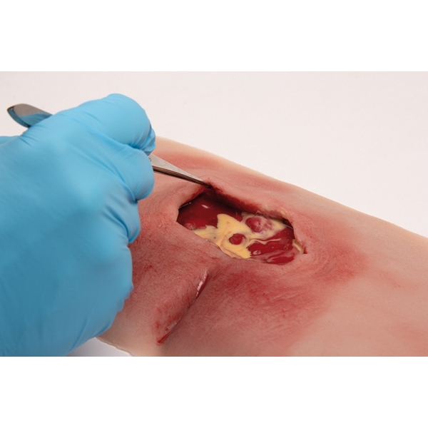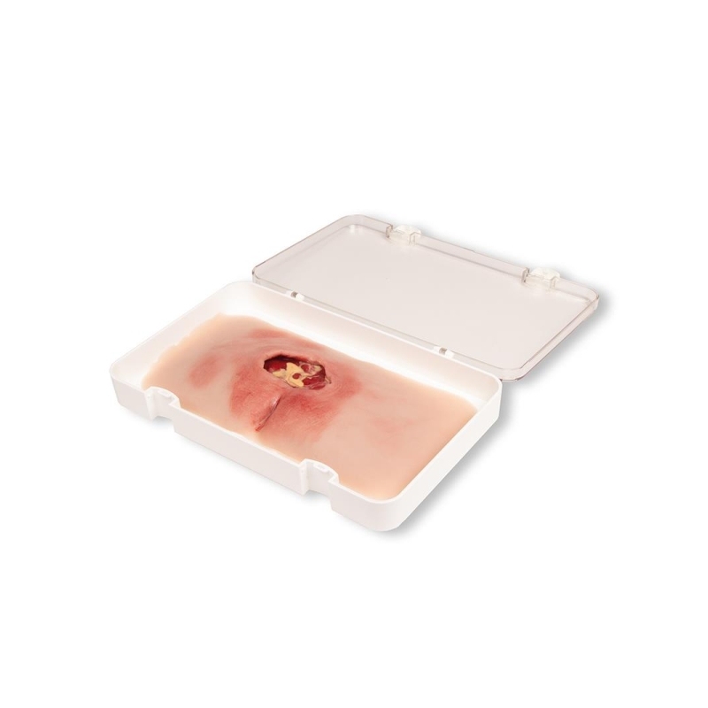 Ta mulaža prikazuje križni predel z razjedo zaradi pritiska po kirurškem čiščenju. Nekrotično tkivo je bilo odstranjeno, na rani so žepi. Rana je na voljo sveže očiščena ali z ekssudatom iz rane. Mulaž se lahko uporabi za prikaz vakuumske terapije ran. Mulaž se prilepi na simulirane paciente ali preskusne lutke, za daljša usposabljanja ga je mogoče pritrditi s posebnim kožnim lepilom. Za prikaz značilnih izzivov pri prevezi rane je upodobljen analni pregib.