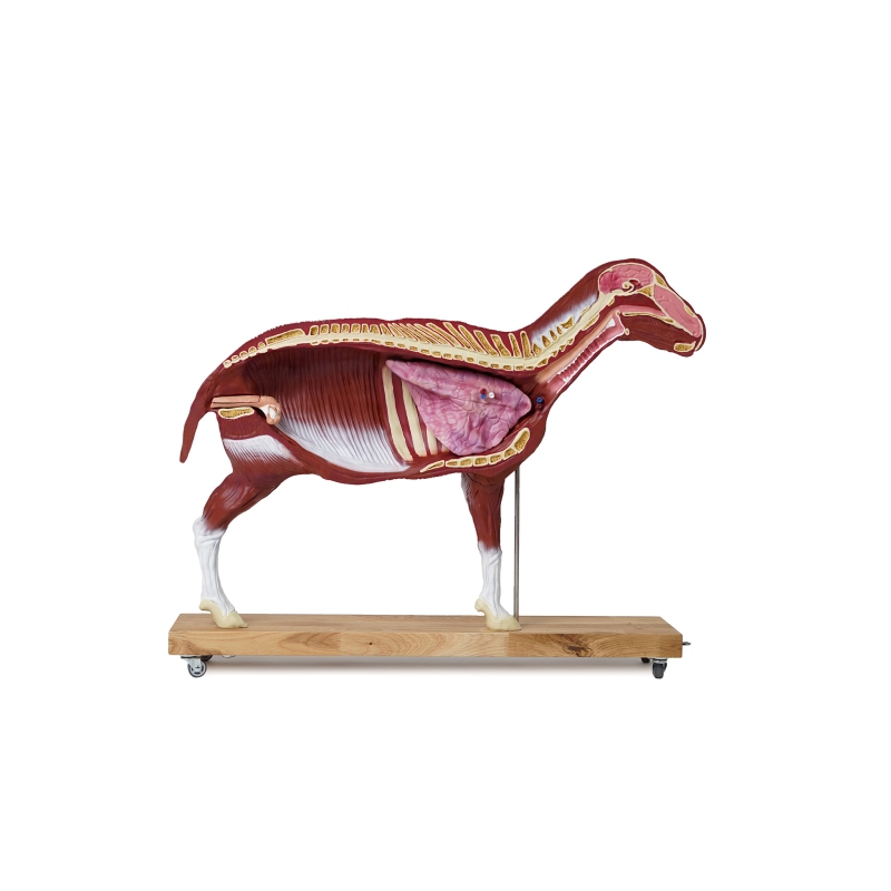 Pomanjšani model ovce na podstavku, približno 2/3 polne velikosti. Razdelite ga lahko na vsaj 12 ločenih delov telesa in organov. Model prikazuje podrobnosti zunanje in notranje anatomije - vključno z mišično strukturo ovce na eni strani, medtem ko je zunanja struktura vidna na drugi strani. Celoten model je mogoče razdeliti na sagitalni prerez, zaradi česar prikazuje notranjo strukturo prsnega koša živali ter organe prebavnega, razmnoževalnega in izločalnega sistema, ki jih je mogoče razstaviti in razstaviti na dele.